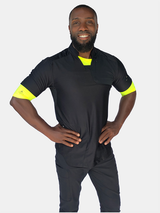 The Albion combines technical fabrics and an athletic tailored fit to keep you cool and agile. Its advanced Level 2 Certified front provides protection while the moisture management and four-way stretch back enhance comfort through long shifts. The modern mock neckline adds a refined professional aesthetic. Made in the USA.