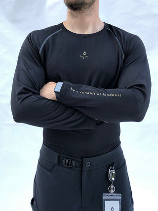 “I wear Kyur’s base layer top under my protective lead intra-op for hours with no sweat through to my lead.”