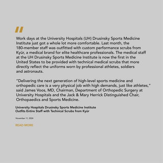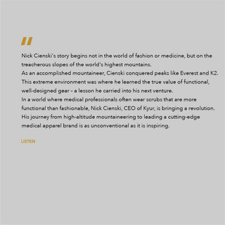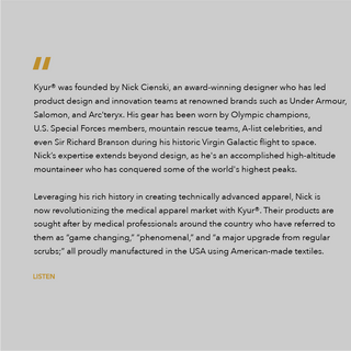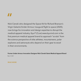 "The goal was to deliver cutting-edge technology to keep the medical team safe, comfortable, and looking great—all while performing at their highest level, no matter the conditions," said Nick Cienski, Kyur Founder.